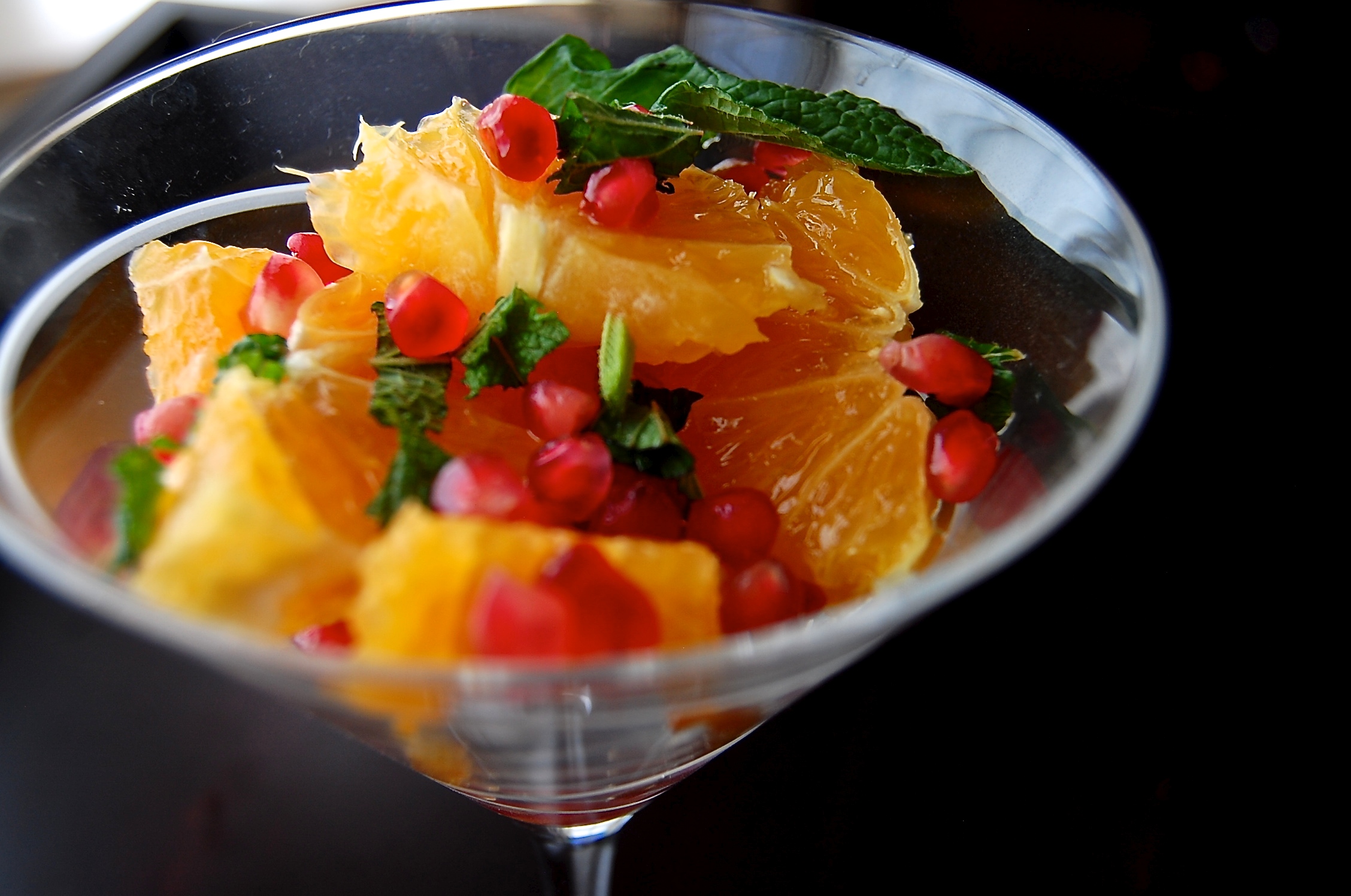 Toss together the orange slices and pomegranate seeds in a small bowl. Refrigerate for about 30 minutes to let the flavors come together.